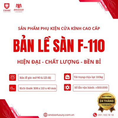 Bản lề sàn kính cường lực F-110 của thương hiệu phụ kiện kính Falke là dòng sản phẩm cao cấp được thiết kế chuyên dụng cho cửa kính cường lực, cửa gỗ và cửa nhôm kính. Với khả năng chịu lực tốt, độ bền cao cùng thiết kế tinh tế, F-110 đang là lựa chọn hàng đầu cho các công trình văn phòng, trung tâm thương mại, showroom và nhà ở hiện đại.