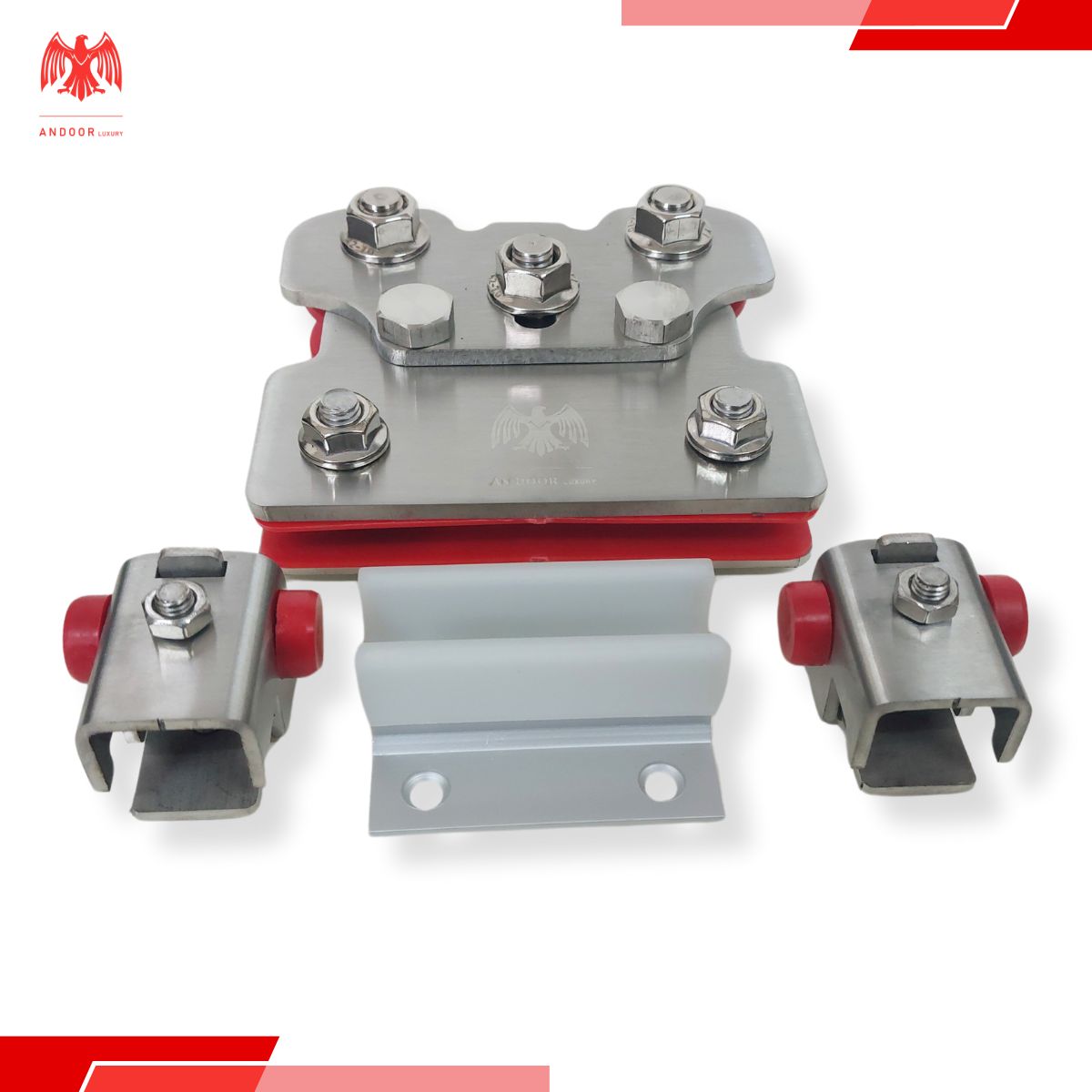 Bộ phụ kiện ray treo cửa lùa Andoor Luxury được chế tạo từ những vật liệu chọn lọc như hợp kim nhôm, thép không gỉ, đảm bảo không gỉ sét và độ bền vượt thời gian.