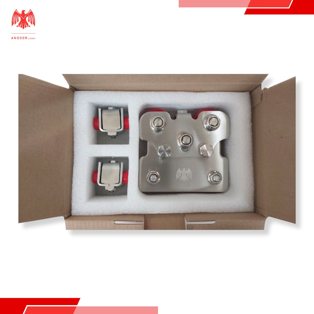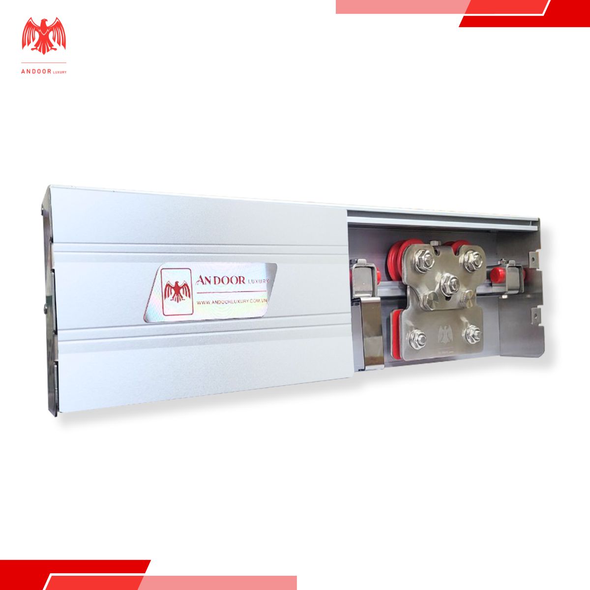 Andoor Luxury là thương hiệu hàng đầu trong lĩnh vực các giải pháp cửa lùa cao cấp. Từng sản phẩm của Andoor được thiết kế và sản xuất với sự tỉ mỉ, nhấn mạnh vào chất lượng và tính thẩm mỹ. Bộ phụ kiện ray treo cửa lùa của Andoor Luxury không chỉ được đánh giá cao về độ bền bỉ, mà còn đem đến trải nghiệm sử dụng vượt trội.